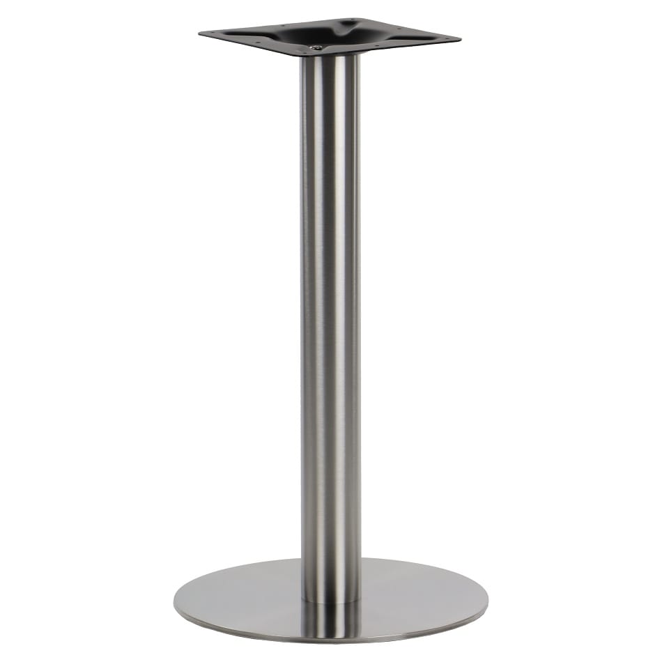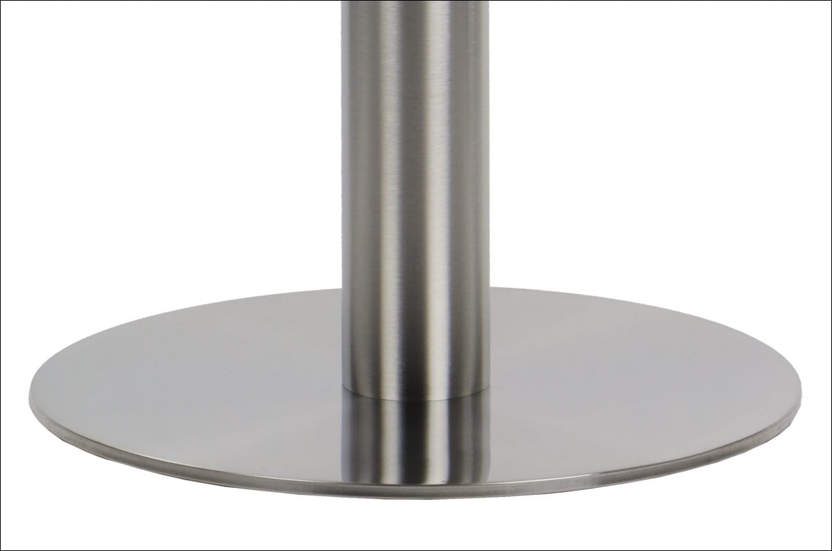 Dolny element podstawy SH-3001-1/S to koło o średnicy 39,5 cm wykonane ze stali i blachy nierdzewnej szczotkowanej. Noga ze stali nierdzewnej połączona została z elementem przeznaczonym do montażu blatu, który wykonano z blachy tłoczonej. Dzięki regulowanym stopkom podstawę można łatwo wypoziomować. Produkt przeznaczony jest do samodzielnego montażu.