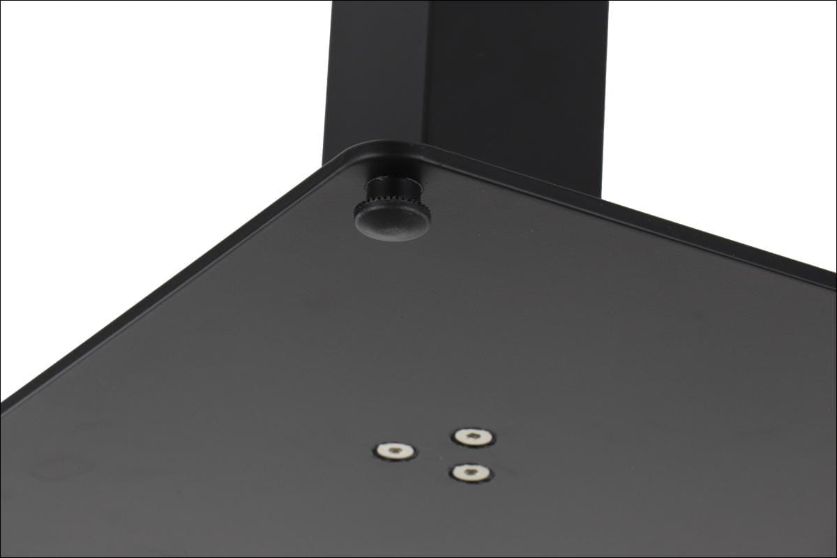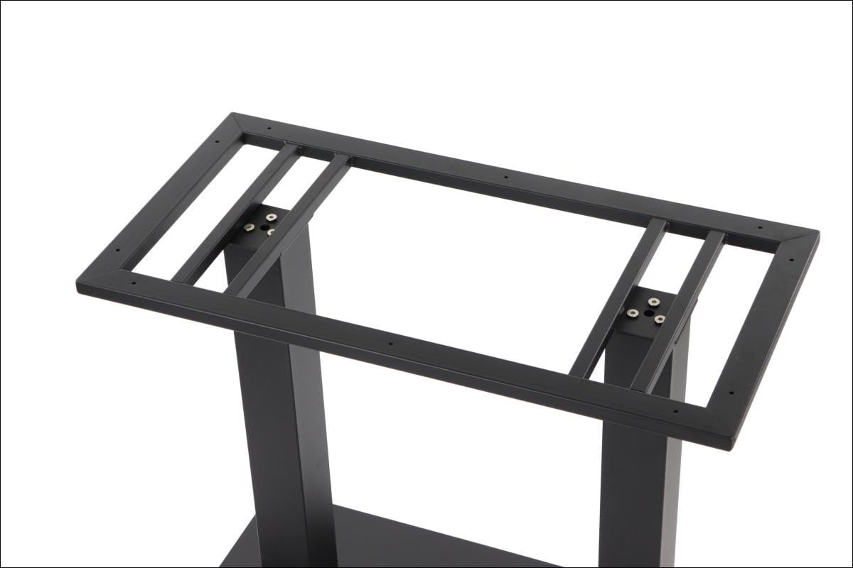 SH-5003-3/B to podstawa stolika wykonana ze stali malowanej proszkowo. Jej dolna część w formie prostokąta wyposażona została w nóżki, które pozwalają na regulację poziomu stołu. Element górny posiada 10 otworów montażowych służących do przymocowania blatu. Podstawa przeznaczona jest do samodzielnego montażu.