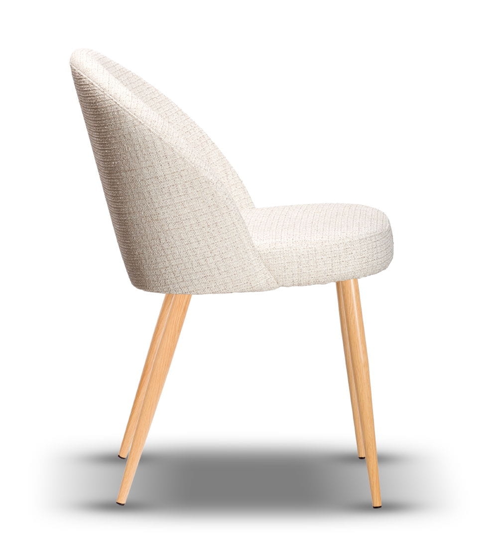 Model Soul łączy prostą, nowoczesną formę z subtelną elegancją. Tapicerowane siedzisko i oparcie wykonane są z wysokiej jakości tkanin, które zachowują estetyczny wygląd nawet przy codziennym użytkowaniu. Smukłe nogi z metalu w kolorze drewna dębowego nadają lekkości konstrukcji i podkreślają minimalistyczny charakter mebla. Całość tworzy harmonijne połączenie stylu, wygody i solidności.