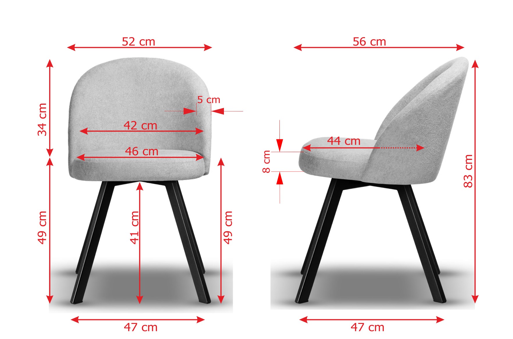 Stelaż wykonany z metalu malowanego proszkowo na czarno gwarantuje stabilność i trwałość, a siedzisko z wysokiej jakości pianki HR-35 zapewnia wysoki komfort użytkowania, modele z serii Plus posiadają dodatkowo grubszą i wygodniejszą warstwę pianki na siedziskach, która znacząco poprawia komfort siedzenia. Krzesło dostępne jest w szerokiej gamie tkanin i kolorów, dzięki czemu z łatwością dopasujesz je do charakteru swojego wnętrza – od loft po nowoczesny.