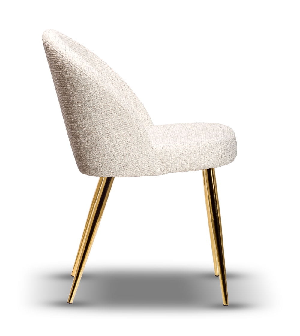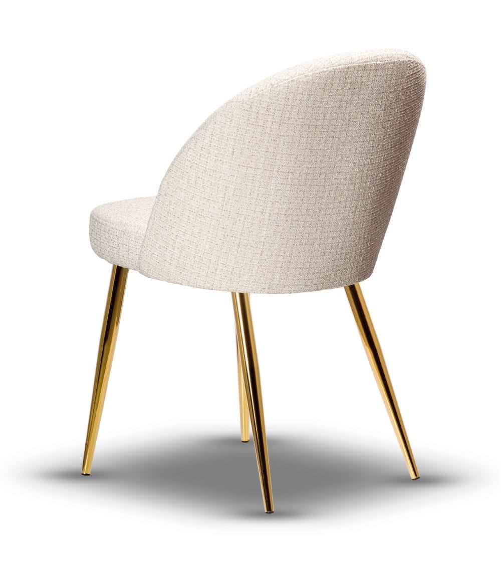 Stelaż wykonany z metalu z powłoką w kolorze złota gwarantuje stabilność i trwałość, a siedzisko z wysokiej jakości pianki HR-35 zapewnia wysoki komfort użytkowania, modele z serii Plus posiadają dodatkowo grubszą i wygodniejszą warstwę pianki na siedziskach, która znacząco poprawia komfort siedzenia. Krzesło dostępne jest w szerokiej gamie tkanin i kolorów, dzięki czemu z łatwością dopasujesz je do charakteru swojego wnętrza – od loft po nowoczesny.