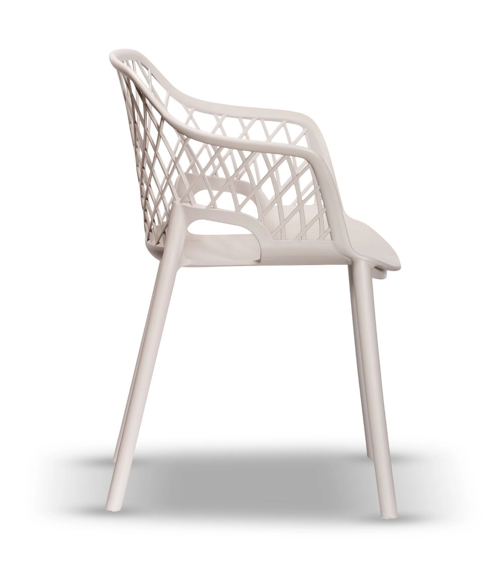 To wygodne krzesło z niezwykle interesującym, ażurowym oparciem, świetnie sprawdzi się w ogrodach oraz na tarasach, jest także idealne na werandy oraz do altan. Krzesła ogrodowe z tej kolekcji dostępne są w różnych kolorach, co pozwala dostosować je do indywidualnych preferencji i stylu otoczenia.