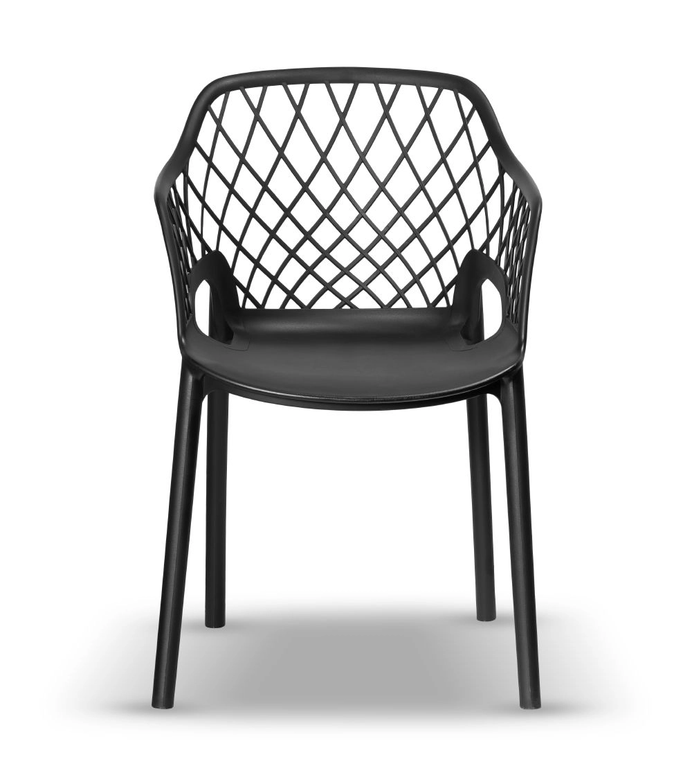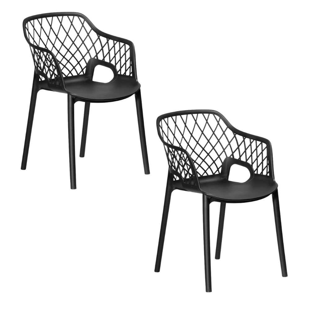Krzesło z tworzywa Chico-2 czarne z podłokietnikami, idealne do ogrodu i na taras - zestaw 2 sztuk
