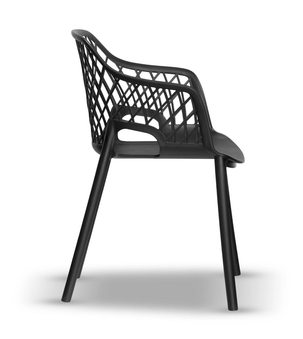 Krzesło z tworzywa Chico-2 czarne z podłokietnikami, idealne do ogrodu i na taras - zestaw 4 sztuk